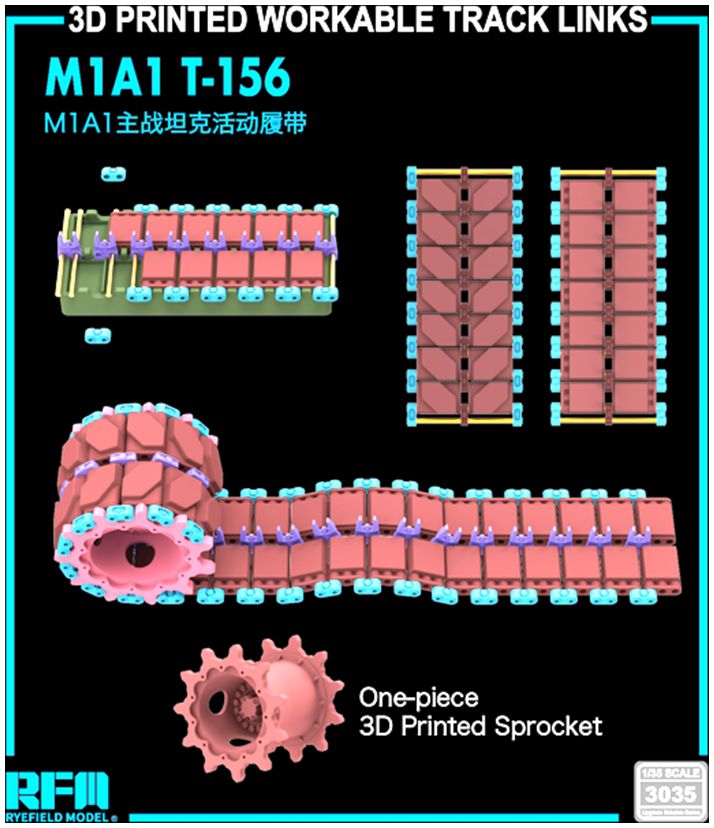 RMF 3035 3D Printed Workable Tracks w/One-Piece Sprocket T-156 for M1A1 1:35 £34.99