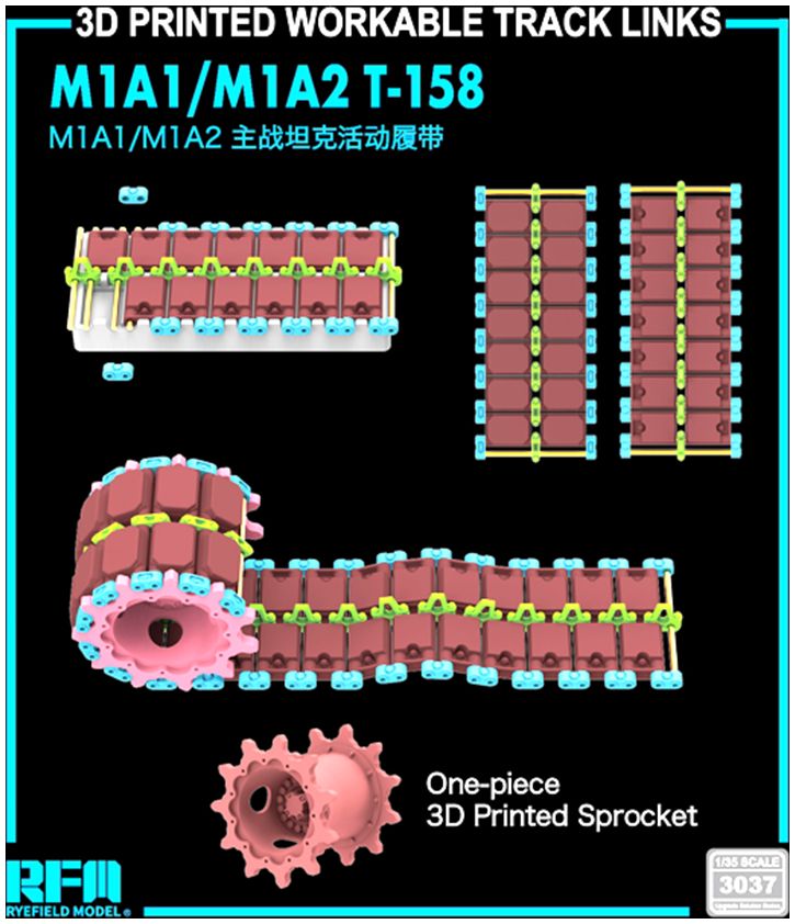 RMF 3037 3D Printed Workable Tracks w/One-Piece Sprocket T-158 for M1A1/M1A2 1:35 £34.99