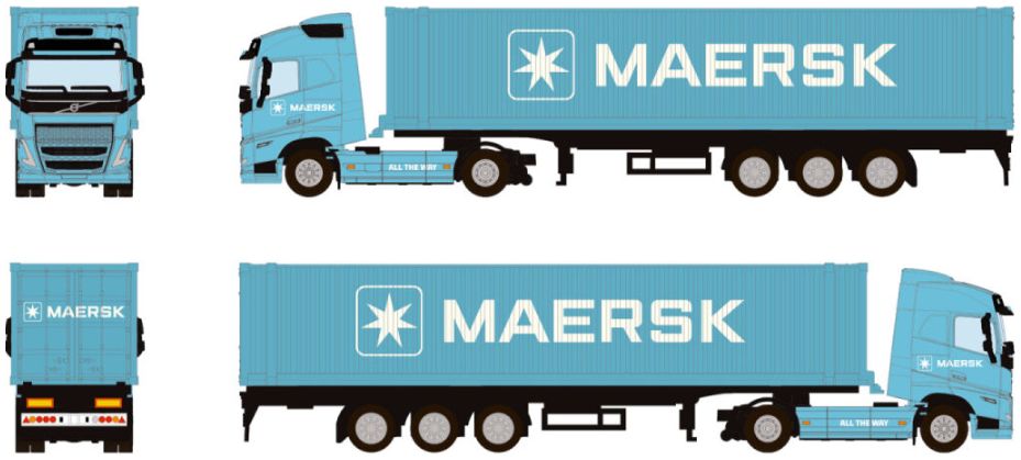 WSI 74-1002 Volvo FH12 Globetrotter XHSL 4x2 Container Trailer 45ft 3 Axle Maersk 1:87 £35.99